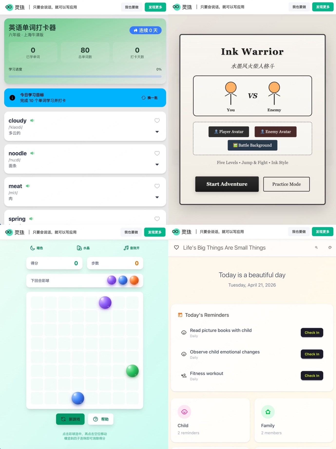 【巨匠网科技轮廓报谈】4月20日,由AI孵化平台上海语生科学推出的AI创作平台“灵珠”(lzhu.cn)谨慎开启第一次内测。灵珠起劲于打造“零门槛”AI创作器具:用户无需懂任何代码,只需在网页中输入创意,系统便能在喝杯咖啡的罅隙自动生成可操作的小掌握、游戏、PPT或旅游攻略等等。