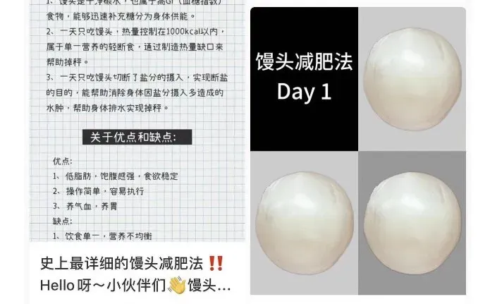 记者搜索发现,应付平台上已有不少网友打卡这一减肥法,“汉堡减肥法”“馒头减肥法”等相同要领也受到不少网友追捧。
