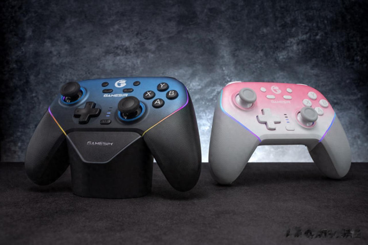 同期外不雅和质感亦然这款居品的凸起亮点,可玩性很足:有 8 种神气的渐变磁吸面壳可供选配,可拆可换,能即兴更换我方心爱的配色;机身带有 RGB 幻彩灯带,单条灯带搭载五颗灯珠,既扶直软件自界说诊治灯光后果,也能通过组合键快捷切换,操作很浮浅;搭配专属智能启停充电底座,手柄充电时还能和底座达成灯光同步,兼顾了实用性和颜值。