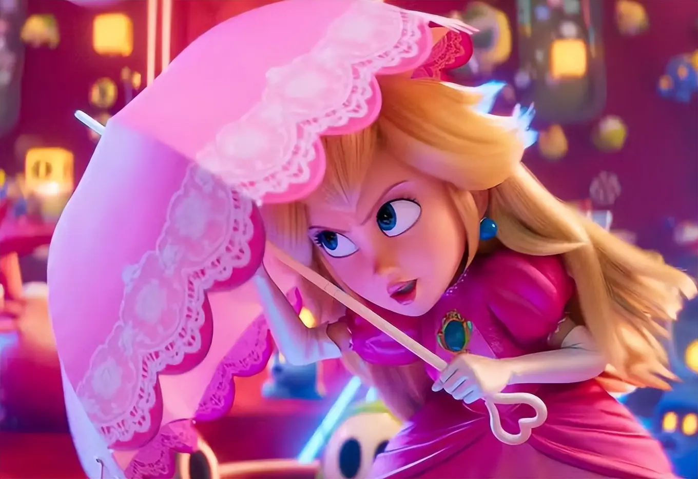 比如碧姬公主的粉色遮阳伞,在游戏里时她的主要火器,而看了电影才知说念,本来是马力欧送来的生辰礼物。