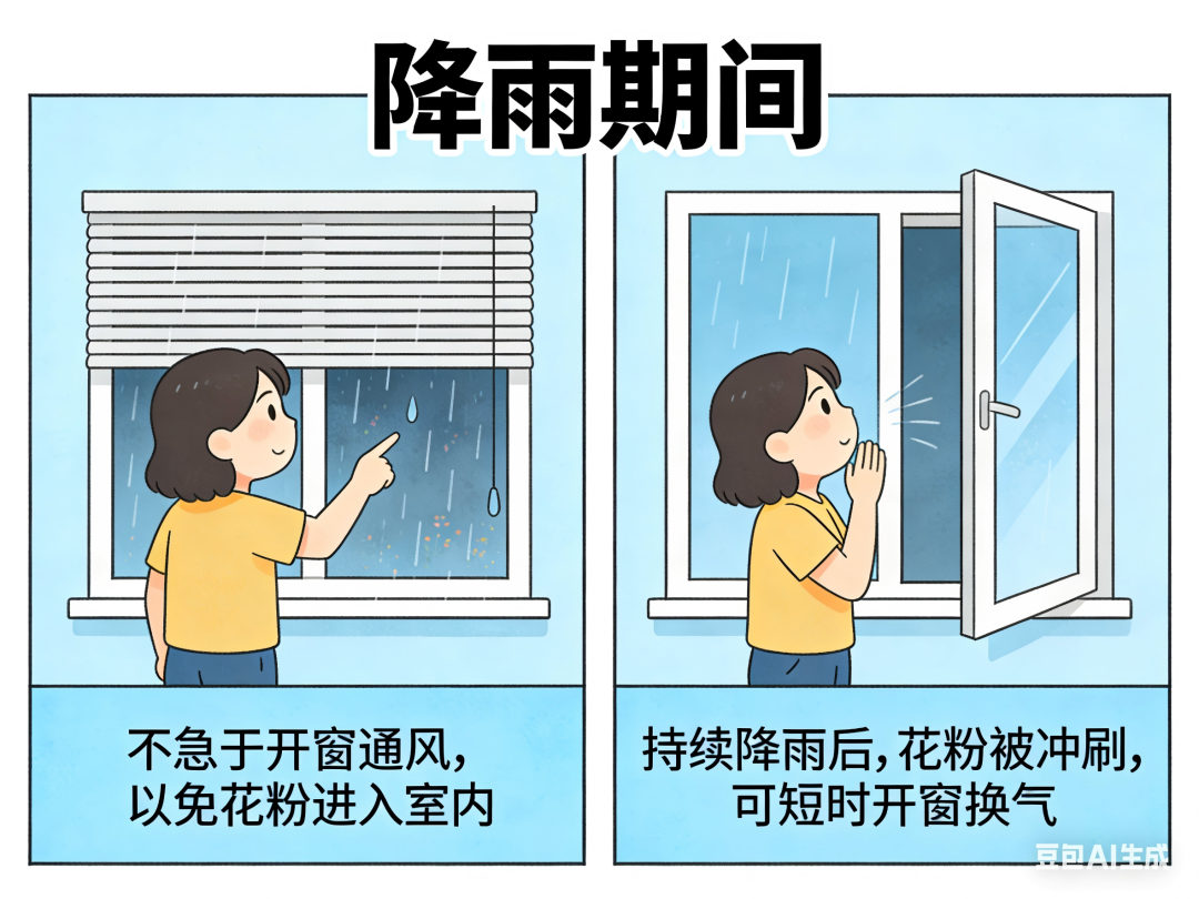 同期,居家时代,闭紧门窗;如有要求,开启空气净化器至大档位,防护花粉和柳絮渗透。