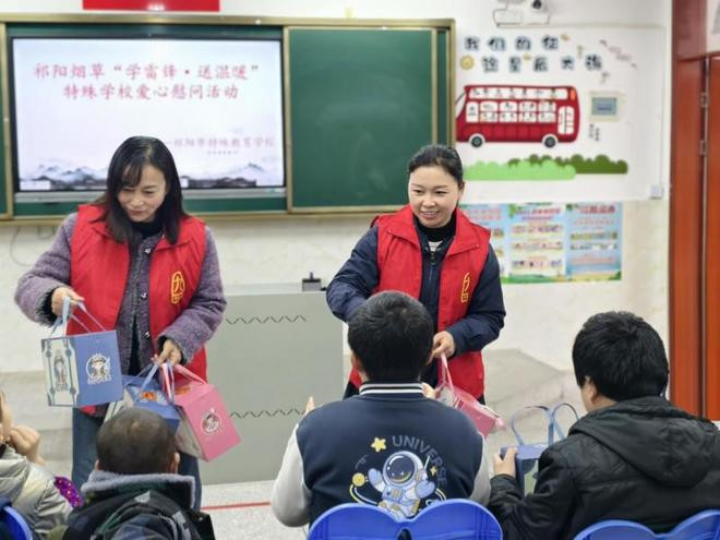 走进教室,寰球将包装精采的爱心礼盒逐个递到孩子们手中。有的孩子懦弱接过礼盒,指尖触到包装的一会儿,眼里亮起了细碎的光;有的把礼盒紧紧抱在怀里,回想就拉着身旁的小伙伴,小声共享收到的惊喜;还有的攥着身旁东谈主的手,用稚嫩又诚恳的语言,一遍遍说着感谢。