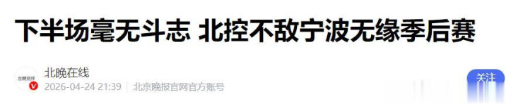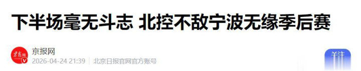 京报网——下半场毫无斗志 北控不敌宁波无缘季后赛