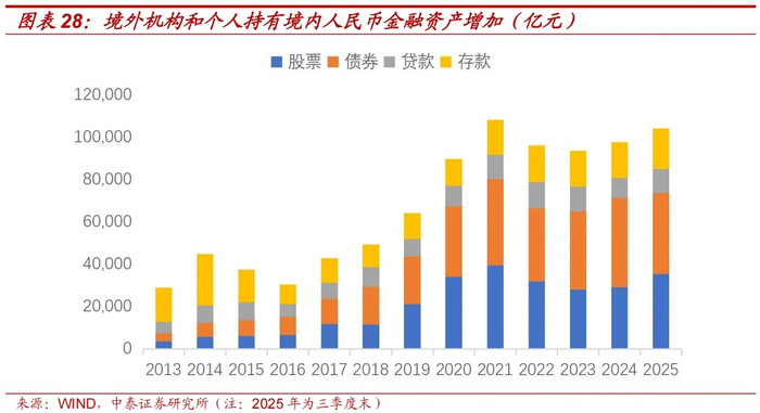 从境外主体的角度看,东谈主民币金钱的招引力升迁。2023年起,境外机构和个东谈主握有境内东谈主民币金融金钱畛域企稳回升。国际货币金融机构官方论坛对公共75家央行的调研恶果闪现,30%的央行默示将增配东谈主民币金钱。