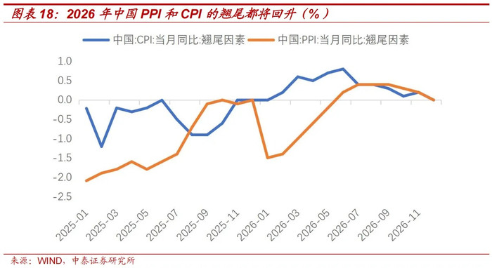在低基数的支援下,2026年中国PPI和CPI的翘尾将回升,这也会对出口价钱形成一定支援。