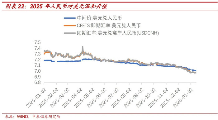 谈判到物价和睦回升需要时期,咱们以为东谈主民币增值,有助于达成2035年中国东谈主均GDP达到中等发达国度水平的方针。近期东谈主民币兑好意思元汇率已升破6.9,似有快速增值趋势,但其本色照旧“补升”,因为2022-2025年东谈主民币施行灵验汇率年均贬值约4%,预期2026年中好意思GDP差距将有所缩小。