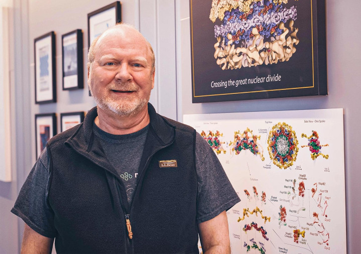 细胞生物学家迈克·鲁特数十年来一直苦恼于于究诘核孔复合体。这种由数百种卵白质组成的至关紧迫的结构,是细胞核的守门东说念主和交通料理员。洛里·切尔托夫/洛克菲勒大学