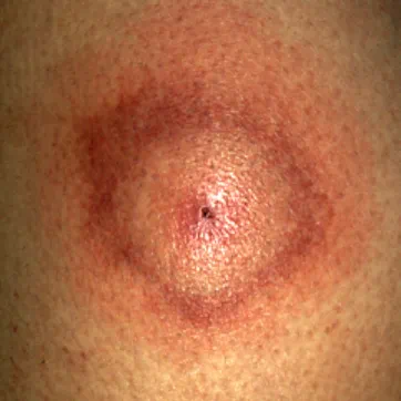 移除蜱后,应不雅察叮咬部位是否出现游走性红斑(见底下图示),不雅察技术不绝30 日,如果出现了即刻就诊。