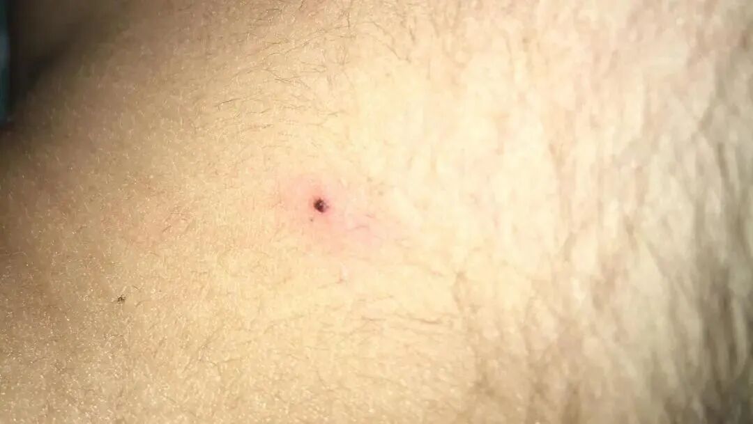 蜱虫叮咬后最常见的响应是叮咬处可能出现轻度的红肿、瘙痒、祸患感,部分叮咬区域出现硬结、丘疹大略溃疡痂皮蜕变。因为蜱虫吸血进程可能会不绝数小时,也可能被东说念主发现的时候,蜱虫还莫得零散,外不雅等于一个越来越大的玄色皮疹。