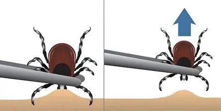 蜱叮咬后,第一步是实时移除附着的蜱。正确的移除附着的蜱的花样如下:
